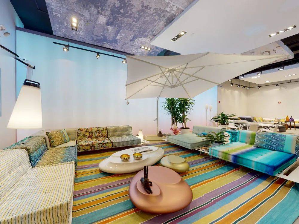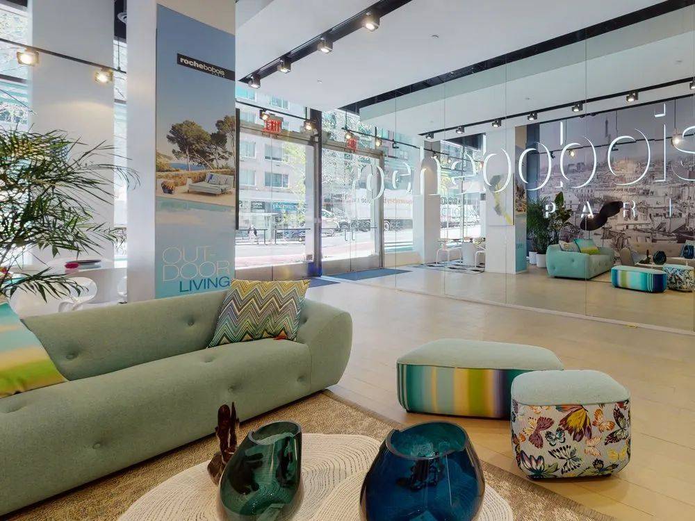 Roche Bobois 门店通常位于城市核心高端区域,门店设计优雅简约,陈列精致如画廊。通过讲究灯光、配色、场景布置和香氛,提供远超传统家具卖场的沉浸式体验。