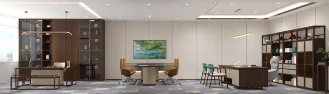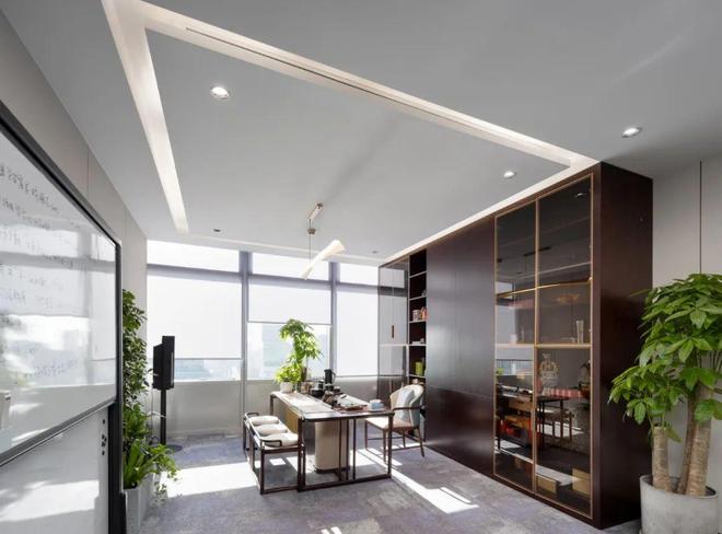 董事长办公室,延续现代简约的主基调,融入中式美学的精神内核,打造一个兼具高效办公,商务会客,高层会议的复合型空间。