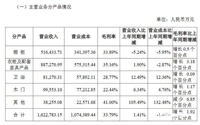 虽然欧派营收净利双增尊龙人生就是博d88,但从业务板块来看,其主打的橱柜板块,营收同比下滑5.24%,也是唯一出现下滑的业务。
