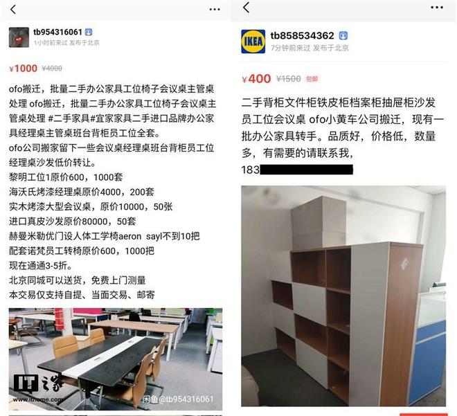 闲鱼信息显示,两位闲置信息发布者均是来自北京,信息发布者称,系ofo搬迁所以才出手这些办公用品。所有的桌椅板凳沙发均以三到五折出售。粗略估计,此次闲鱼上挂出的这些办公用品购入价格至少650万元。粗略估计,此次闲鱼上挂出的这些办公用品购入价格至少650万元。