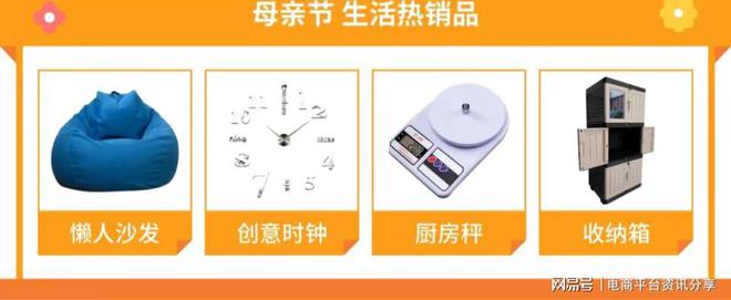 家居类目一直都是常年电商平台的热销类目。在母亲这个节点必然也是必不可少的的大类目。母亲们长期的操劳在我们的起居,选择一款可以让母亲在日常家务中可以减少辛苦成本的产品。居家装饰、餐厨具、收纳工具等家居日用品是不错的选择。