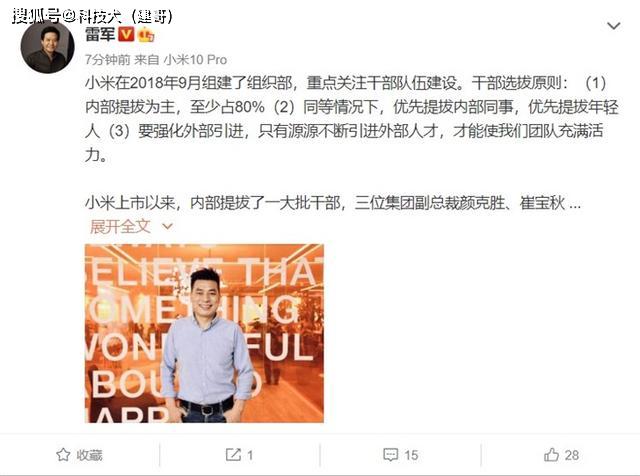 雷军还称,小米上市以来,内部提拔了一大批干部,三位集团副总裁颜克胜、崔宝秋和高自光,三十多位事业部总经理和职能部门总经理等。